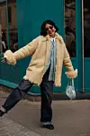 Akkurat nå handler de beste antrekkene om lek med teksturer. Når det kommer til denim, kan uventede materialvalg gi stor stilgevinst, som for eksempel en gullfarget jacquard à la Dries Van Noten. Topp det hele med en oversized ullkåpe som tilfører enda mer dybde til antrekket.