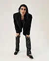 Sort blazer og skinnbukser er et go to-antrekk som alltid funker. Og når våren melder seg gleder vi oss til å style looken med et par ballerinasko.