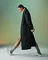En sort kåpe med belte i livet er så fresht å style til vide bukser og en deilig strikk.