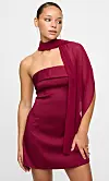 Tubekjole i sateng med en skjerfdetalj i burgunder, kr 599 (annonselenke).