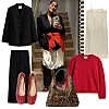 Og så den røde tråden (bokstavelig talt!) – hun matcher genseren med røde sko, som binder hele antrekket sammen og gir looken det lille ekstra. En skikkelig match made in heaven!