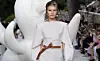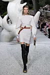 Norske Signe Veiteberg strålte på catwalken iført en lekker hvit kjole og sorte høye støvler. Foto: Louis Vuitton.