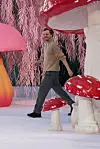 Flere gigantiske sopp var dandert rundt catwalken. De rosa piletærene og de fargerike soppene skapte en Alice i Eventyrland-estetikk – noe også invitasjonen til visningen hintet til, den var en sølvfarget pilleboks formet som den magiske soppen Alice smaker i Eventyrland.