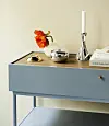 Den høye vasen kan like gjerne brukes på soverommet som til et stilleben i stuen.