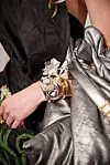 Skulpturelle hæler og minaudières (små clutch-bokser) var pakket inn i nybroderte antikke tekstiler fra 1700-tallet. Portrettminiatyrer fra samme århundre fungerte som brosjer innrammet av perler, sløyfer og håndmalte orkidéer.