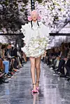 Hortensialiknende blomster dukket opp som overdimensjonerte øredobber gjennom hele kolleksjonen. (Rihanna elsket visstnok disse blomsteøredobbene så mye at hun sikret seg et par for å ta med til after-partyet på Le Voltaire – to luftige rosa syklamen-buketter.)