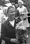 Dronning Sonja fotografert i 1970. Bildet gir et tidsriktig innblikk i dronningens tidlige år i offentligheten, der hennes personlige stil og naturlige eleganse allerede var tydelig, i en periode som markerte starten på hennes rolle som en sentral skikkelse i det norske kongehuset.