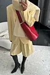 Et smørgult sett stylet til en rød veske og et fuskepelsskjerf – dette vil vi kopiere!