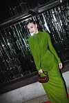 Sophie Sylte i en eplegrønn kjole style med burgunder veske fra Bottega Veneta.