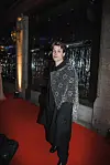 Artist Ingebjørg Bratland en nydelig sort satengkjole.