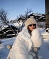 Rawda Mohamed i en lekker, steinbelagt kreasjon med fjær.