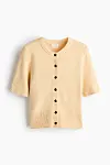 Kortermet cardigan i nydelig, lys gul farge, kr 199 (annonselenke).