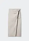 Et lyst midi-linskjørt man kan bruke år etter år, og kan styles på uttallige måter. Dette skjørtet med en fin knytedetalj tar vi med oss på årests sommerferie!
