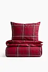 Rødrutet sengesett i flanell, kr 399 (annonselenke).