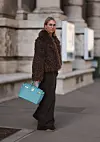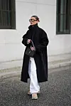 La Uggsene så vidt titte frem under vide dressbukser. Hold antrekket i én fargetone for et mer diskré uttrykk, og la en statement-veske eller en shearling-kåpe ta fokuset.