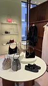 Prada har åpnet to tilstøtende butikker, hvorav den største tilbyr et bredt sortiment av klær, sko, vesker og accessoirer, mens den minste butikken har et bredt utvalg av sko og solbriller. Det er første gang Prada åpner en egen butikk utelukkende for sko, noe som gjør akkurat denne butikken helt unik på verdensbasis.