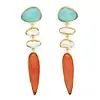 Gullbelagte øredobber med naturperler, jadesten og oransje glass.
