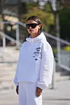 For en kontorvennlig look som er like chic som den er praktisk: prøv å kombinere sporty yttertøy med dine vanlige dressbukser. Den avslappede passformen føles langt mer komfortabel enn en stiv blazer, uten å miste fasong. Det glatte materialet skaper også en fin kontrast til mer delikate tekstiler som semsket skinn på vesken eller en kasjmirgenser.