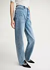 Lyse jeans som sitter på hoftene med tvistet søm gir vårlooken vår en fresh vibe. 90-tallsvask er noe vi craver skikkelig om dagen...