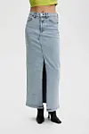 Invester i et nytt langt denimskjørt og style det med en lekker liten bluse.