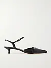 En liten leopardveske «frekker opp» en ellers så klassisk look, og legg merke til hvordan hun styler svarte flate sko med fine strømper: