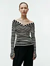 En stripete off the shoulder-genser. Denne gir instant chicness i vårgarderoben!