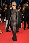 Nadia Lee Cohen i en gjennomsiktig kjole stylet med svart truse og solbriller. Foto: Stephane Cardinale - Corbis/Corbis via Getty Images